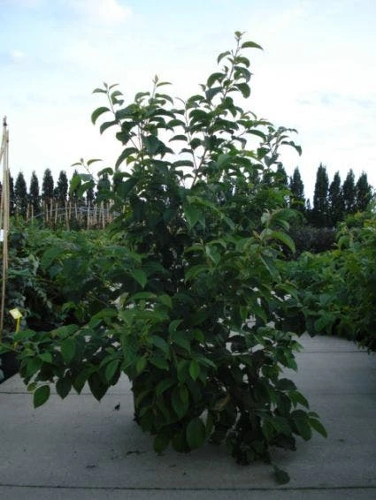 Deze Halesia krijgt een gele herfstkleur, in de zomer is het ronde blad groen van kleur.