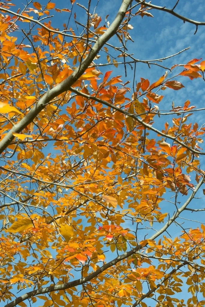De bladeren verkleuren in de herfst naar felgeel en oranje.